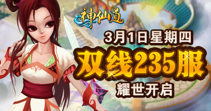 37wan平台经典火爆仙侠大作,2012再掀狂热浪潮!《神仙道》双线235服将于3月1日10点火爆开启!《神仙道》是一款横版RPG类型的仙侠题材的网页游戏,在游戏中,玩家将自身融入一个仙侠的世界,一路斩妖除魔,经历众多冒险关卡,享受与各种妖魔鬼怪的战斗带来的打击刺激,游戏玩的就是惊险,游戏玩的就是剧情。让我们一起“修仙求道,猎命改运”。