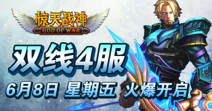 37《惊天战神》双线4服将于2012年6月8日12:00震撼开启。惊天之战即将上演,超乎想象的游戏体验正期待您的加入! 喜迎新服开启,37《惊天战神》已为您准备了丰富的开服活动助您一战惊天,开启属于您的战神元年!