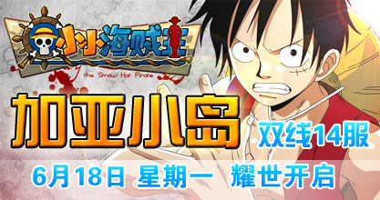 37《小小海贼王》双线14服“加亚小岛”将于2012年6月18日12:00 火爆开启!精彩即将上演,超乎想象的游戏体验正期待您的加入!喜迎新服开启,37《小小海贼王》已为您准备了丰富的开服活动让更多的玩家畅享在这个精彩的游戏世界。精彩不断,好礼不停!