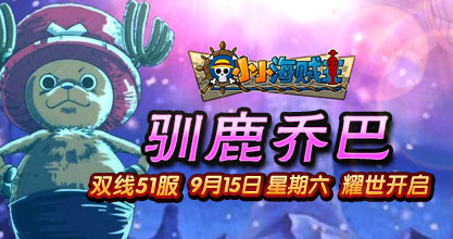 37《小小海贼王》双线51服“驯鹿乔巴”将于2012年9月15日12:00 火爆开启!精彩即将上演,超乎想象的游戏体验正期待您的加入!喜迎新服开启,37《小小海贼王》已为您准备了丰富的开服活动让更多的玩家畅享在这个精彩的游戏世界。精彩不断,好礼不停!