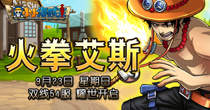 37《小小海贼王》双线54服“火拳艾斯”将于2012年9月23日12:00 火爆开启!精彩即将上演,超乎想象的游戏体验正期待您的加入!喜迎新服开启,37《小小海贼王》已为您准备了丰富的开服活动让更多的玩家畅享在这个精彩的游戏世界。精彩不断,好礼不停!
