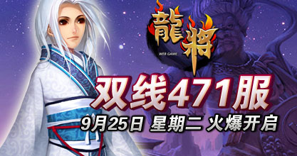 37《龙将》绿色龙将体验服双线471服将于2012年9月25日10:00震撼开启。精彩即将上演,超乎想象的游戏体验正期待您的加入! 喜迎新服开启,37《龙将》已为您准备了丰富的开服活动助你在三国乱世中驰骋沙场、建功立业!