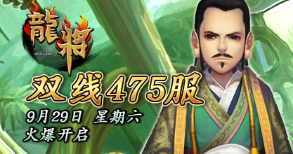 37《龙将》绿色龙将体验服双线475服将于2012年9月29日10:00震撼开启。精彩即将上演,超乎想象的游戏体验正期待您的加入! 喜迎新服开启,37《龙将》已为您准备了丰富的开服活动助你在三国乱世中驰骋沙场、建功立业!