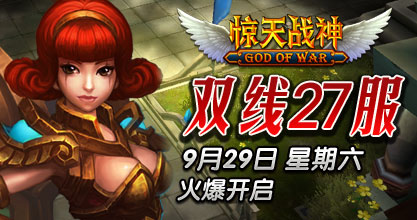 37《惊天战神》双线27服将于2012年9月29日13:00震撼开启。惊天之战即将上演,超乎想象的游戏体验正期待您的加入! 喜迎新服开启,37《惊天战神》已为您准备了丰富的开服活动助您一战惊天,开启属于您的战神元年!
