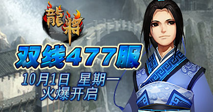 37《龙将》绿色龙将体验服双线477服将于2012年10月1日10:00震撼开启。精彩即将上演,超乎想象的游戏体验正期待您的加入! 喜迎新服开启,37《龙将》已为您准备了丰富的开服活动助你在三国乱世中驰骋沙场、建功立业!