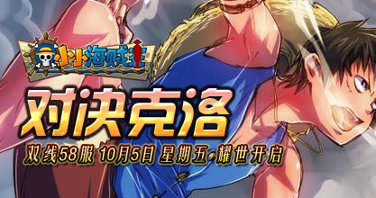 37《小小海贼王》双线58服“对决克洛”将于2012年10月5日11:00 火爆开启!精彩即将上演,超乎想象的游戏体验正期待您的加入!喜迎新服开启,37《小小海贼王》已为您准备了丰富的开服活动让更多的玩家畅享在这个精彩的游戏世界。精彩不断,好礼不停!
