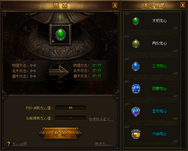 低等级的龙心可以通过消耗龙心值,合成为高一级的龙心,不用担心低等级的龙心没地方用啦!