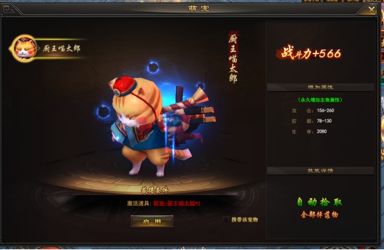 3. 萌宠可以跟在玩家身边,玩家打怪掉率物品时,萌宠可以自动拾取所有掉率物。