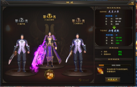 3. 神威等级高的玩家对神威等级低的玩家攻击时,能产生5%的额外伤害压制。