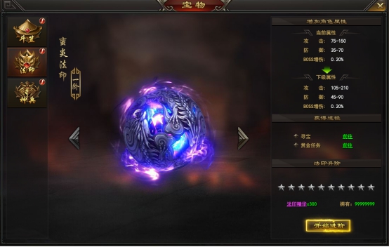 3. 玩家可以通过消耗法印精华来升星法印,当升满10星后即可进阶为下一法印。
