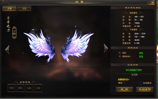 2. 战翼养成可以给玩家增加属性数值,战翼提供了一种重要特殊属性:伤害加深。