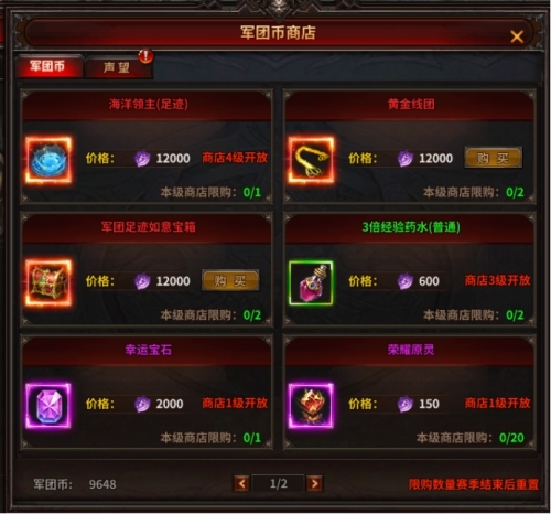 (2) 调整军团战力帽、军团商店新增奖励