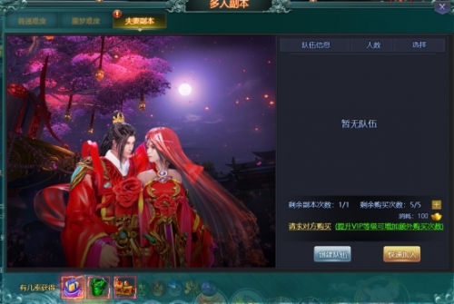 夫妻副本为掉落婚姻装备的地方,结为夫妻的玩家可组队进入