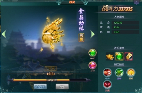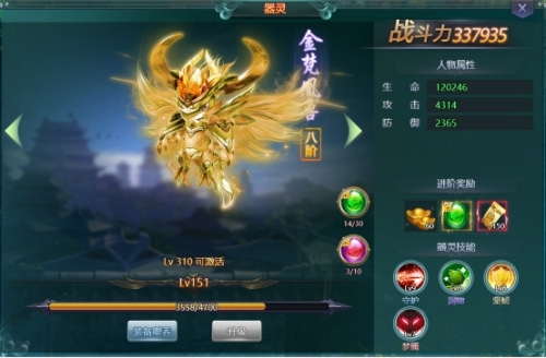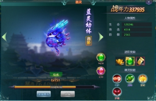 器灵玩法介绍:器灵通过装备喂养增加经验值,经验值满足时可通过升级进行进阶。目前器灵最高等级为9阶,不同等级外形和技能有巨大变化!以下为器灵我下预览