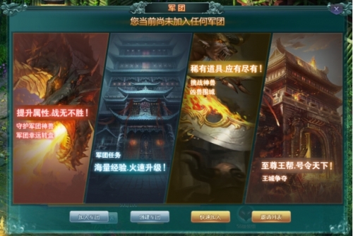 《天骄无双》中加入了全新的军团玩法,玩家可以在游戏主界面右下角进入军团系统。既可申请加入他人军团还可创建属于自己的军团。成功加入军团,就可参与军团玩法获得各种奖励。