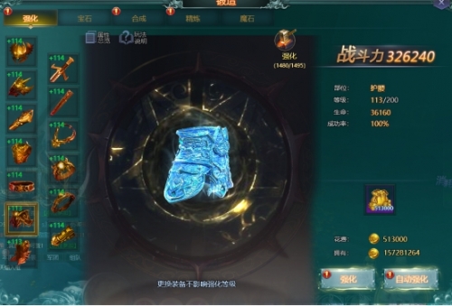 强化:强化人物身上的装备提升人物的属性,强化需要消耗金币更换下来装备不影响强化等级。强化到一定等级激活套装属性。