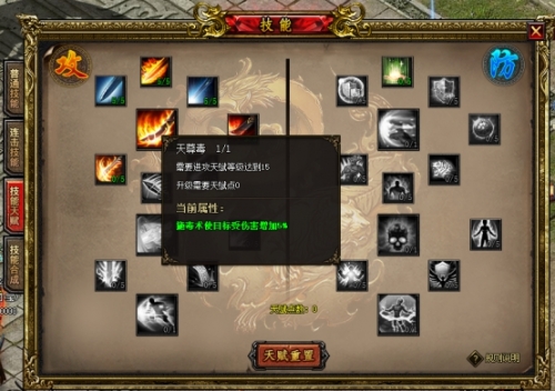 天赋技能各职业统统划分为攻和防两种,两者可双修