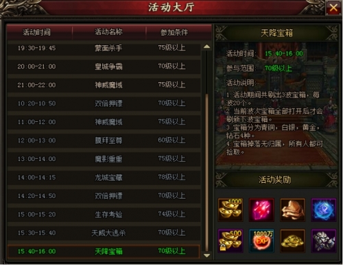新增天降宝箱活动,每天活动时间内开启,打爆宝箱捡取超额道具奖励