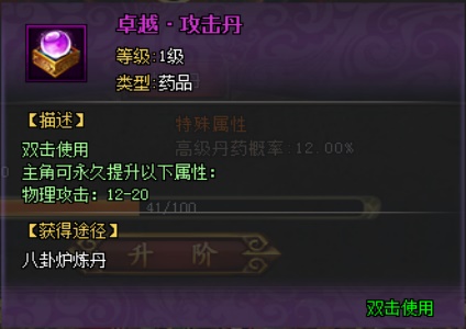 怒火丹:增加10%暴击几率
