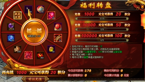 1.玩家每天累计充值达到条件,可获得转盘积分,