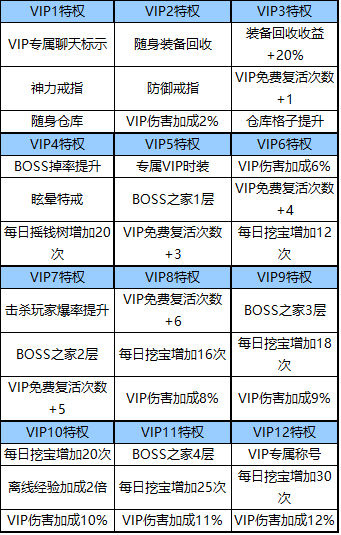 VIP特权整体做了调整,达到对应的VIP激活相应的权限