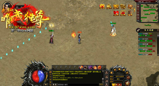 37wan《武尊》之“唯武独尊”新版公测之后,首先变化的就是游戏的UI界面。与原来的界面相比,“唯武独尊”新版UI界面在外观上更为简洁大方,霸气外露!如游戏中“角色”、“包囊”、“技能”等功能按钮不再排成一行,而是汇聚成半圆,使所占的界面空间更少,从而避免玩家在战斗中误点按钮;又如表示血量与怒气值的红蓝半球上将环绕黑龙,真是霸气尽显!更多的人性化界面更新不胜枚举,只待玩家细细体验!