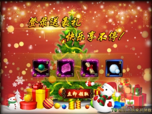 活动说明:活动期间内70级以上玩家登陆游戏即可免费领取海量道具!