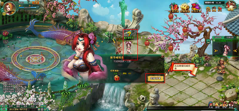 在和新手指导员对话后,了解到自己的使命,并且新手指导员赠送了玩家一个神奇的在线礼包,玩家只要在线达到一定时间后,便可开启礼包,礼包内可以开出各式各样的礼品道具,助玩家征战沙场。点击新手指导员对话框中的“完成任务”按键即可完成游戏中的第一个任务。