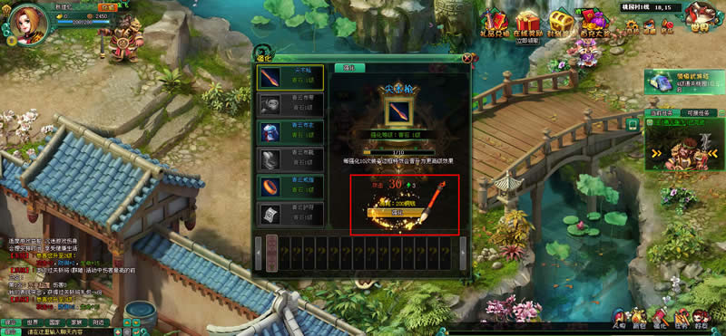 玩家在到达3级时,可以从桃源村的铁匠处接取任务,完成任务后,会开启强化功能,如下图: