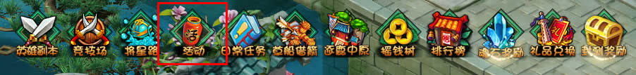 首先玩家需要点击游戏界面上方功能列表条中的日常活动功能按键,如下图: