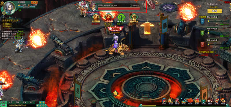 在活动界面上方,会显示当前阵营进攻对象所剩余的血量,到达一定VIP等级的玩家也在对敌武将血条旁边勾选自动战斗选项,系统会自动让玩家角色复活后自动参加战斗,免去玩家操作的时间。