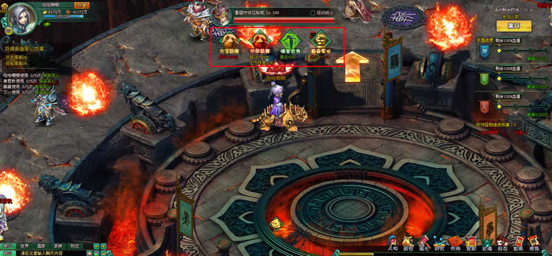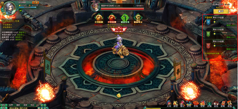 在游戏界面右侧,会显示整个活动的进度情况,包括目前活动还剩余的时间、各个阵营存活的守将数量、守将的剩余血量已经当前玩家个人所造成的伤害总计。玩家造成的伤害越高,证明玩家所获得奖励也就越丰富。