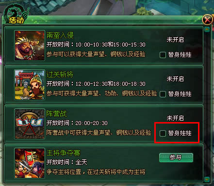 如果玩家不能再活动指定的时间在线参加,建议玩家通过替身娃娃系统,来离线参加活动,以免浪费一部分活动奖励呦。